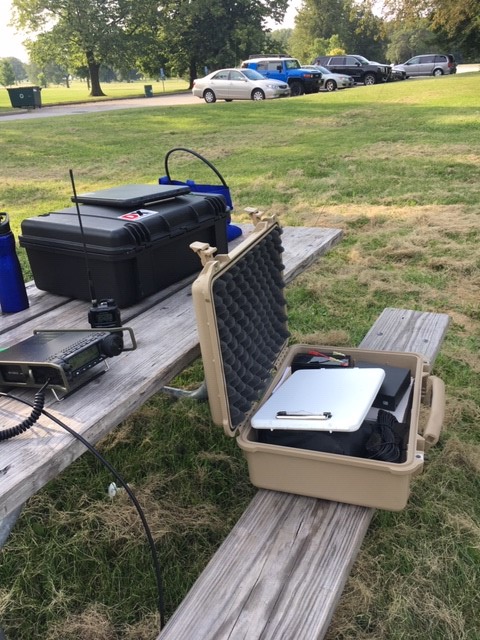 Under the shade of a tall tree, we were able to find a nearby picnic table, which allowed us to get our antennas in the air and setup our radio equipment: